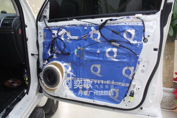 车先生的丰田霸道原来在佛山改的丹拿236音响,在后门使用奕歌技术重装,前门加装丹拿272喇叭,独立走线安装。