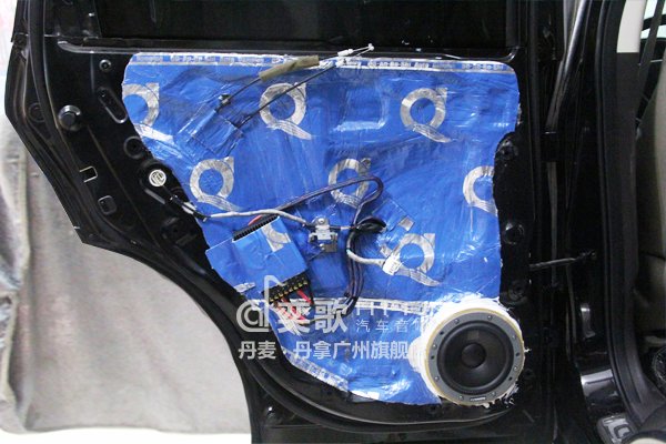 我们检测原来的音响系统,确认前声场状态正常 ,后门加装一套丹拿232音响。