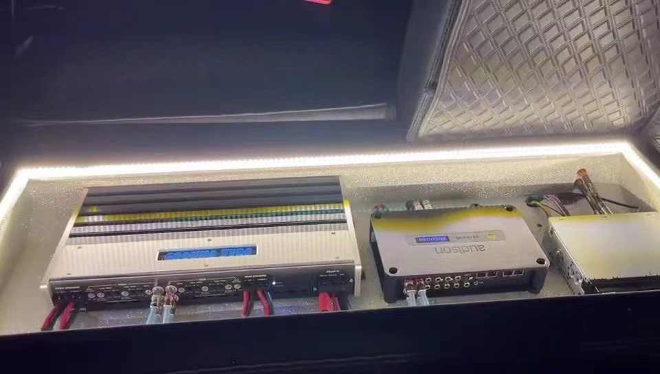 黄先生喜欢汽车音响,在这之前原来车都有在其他地方改过音响,听过朋友敏哥车上在奕歌店改的丹拿汽车音响,黄先生也选择丹拿。黄先生喜欢听有质感细腻的音乐,本田冠道改的是丹拿经典系列的242,为了有更好的音响效果决定做好改装工艺,将高音喇叭在A柱做倒模工艺安装,减少因玻璃反射造成声音的损耗,尾箱做灯光工艺,美观大方又不影响尾箱空间实用性。音响改装好,黄先生